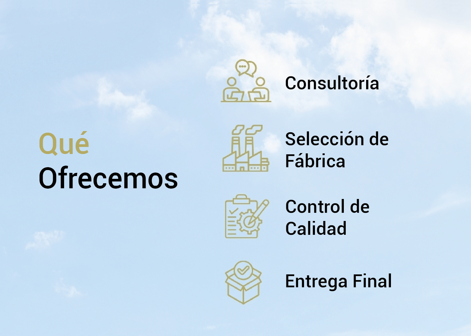 Nuestro objetivo es simplificar la fabricación internacional. Nos encargamos de todo —selección de proveedores, seguimiento de producción, control de calidad y logística— con transparencia y ética en cada paso.